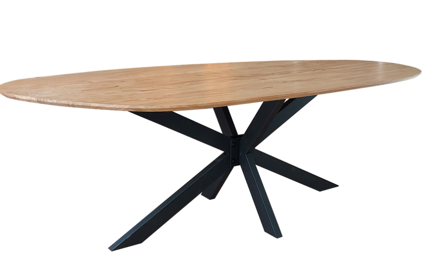 Eettafel Dirk L180xB90xH76 cm deens ovaal, blad keramiek/spinpoot zwart